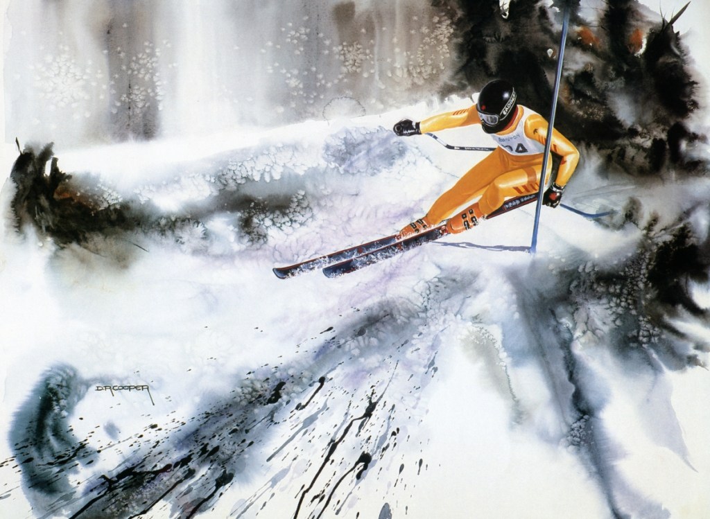 Forest DwellerWhale CoveRegal RaptorWaiting out the StormAmericas Cup “The Prowler”Follow Through PrintCatch the Glory PrintLord of the AirRock On 21″x30″ watercolorCalgary 1988 BobsleighCalgary 1988 DownhillEdge of Night“Royal Raptor”“Rocket Man”“Serenity”“Red-wing Rhapsody”“Kindergarten”
